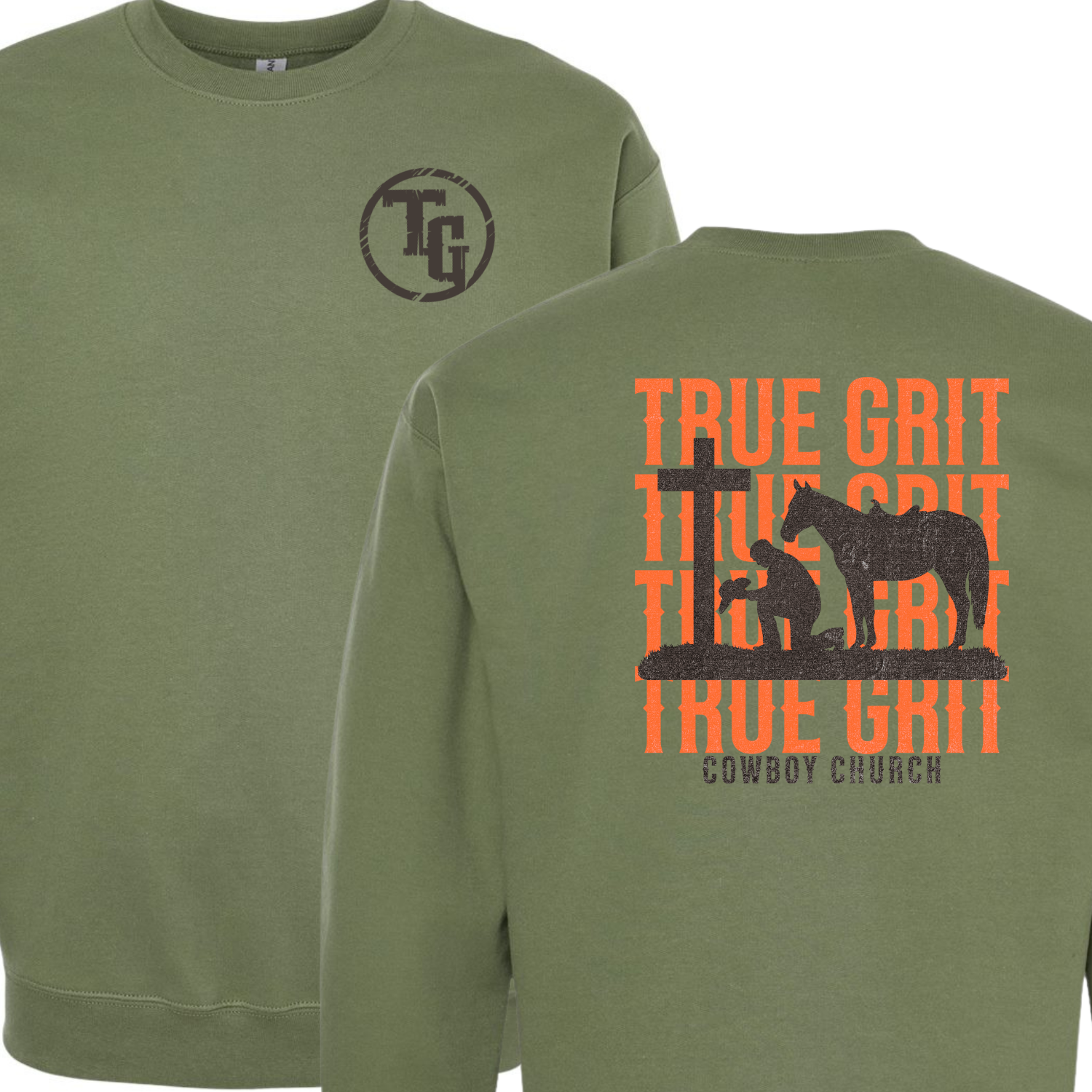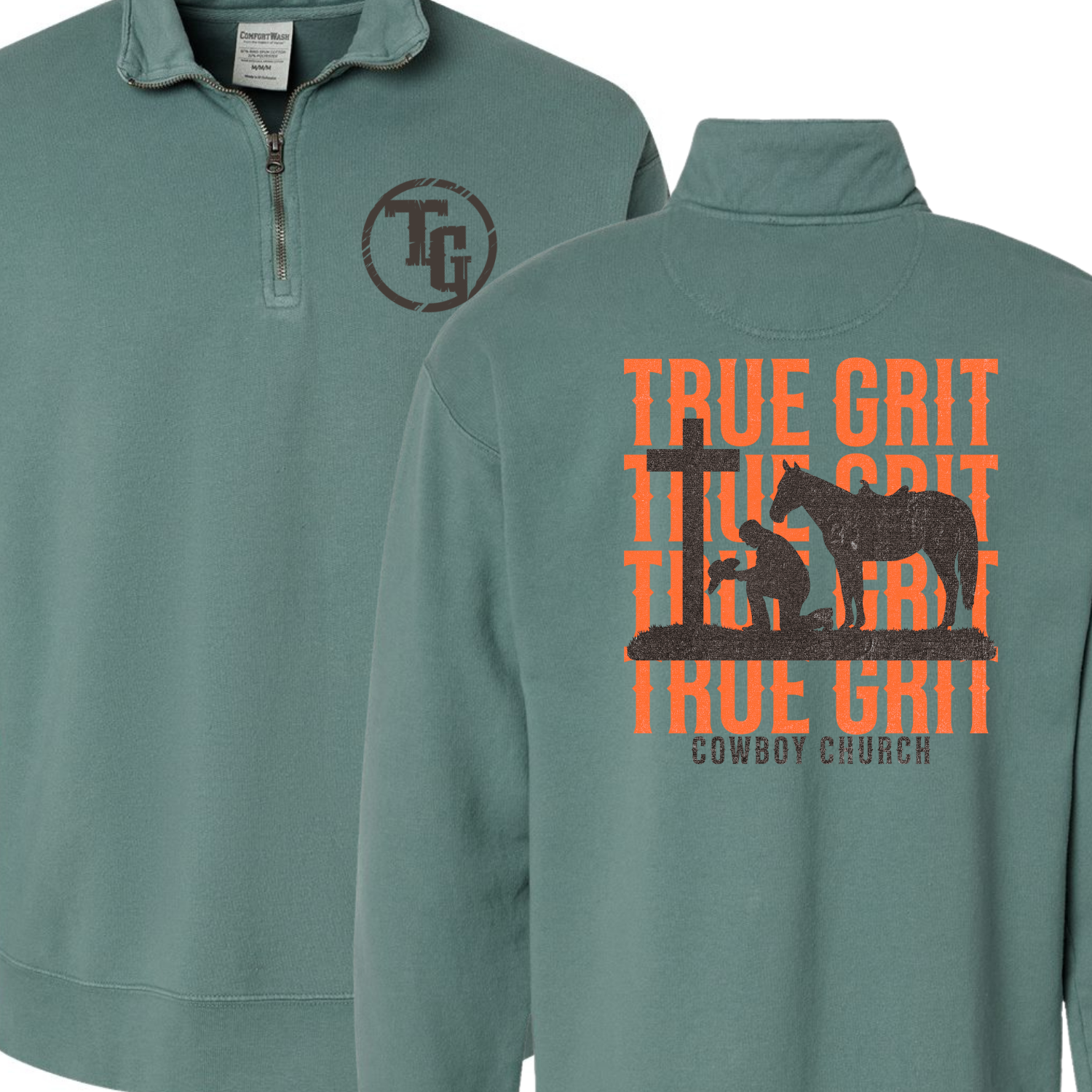 True Grit Cowboy Church Orange Text